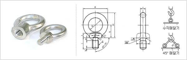 | 사용하중 kgf | 수직사용 | 80 | 150 | 220 | 450 | 630 | 950 | 1,500 | 2,300 | 3,400 | 4,500 | 9,000 | 15,000 | 18,000 | 20,000 |